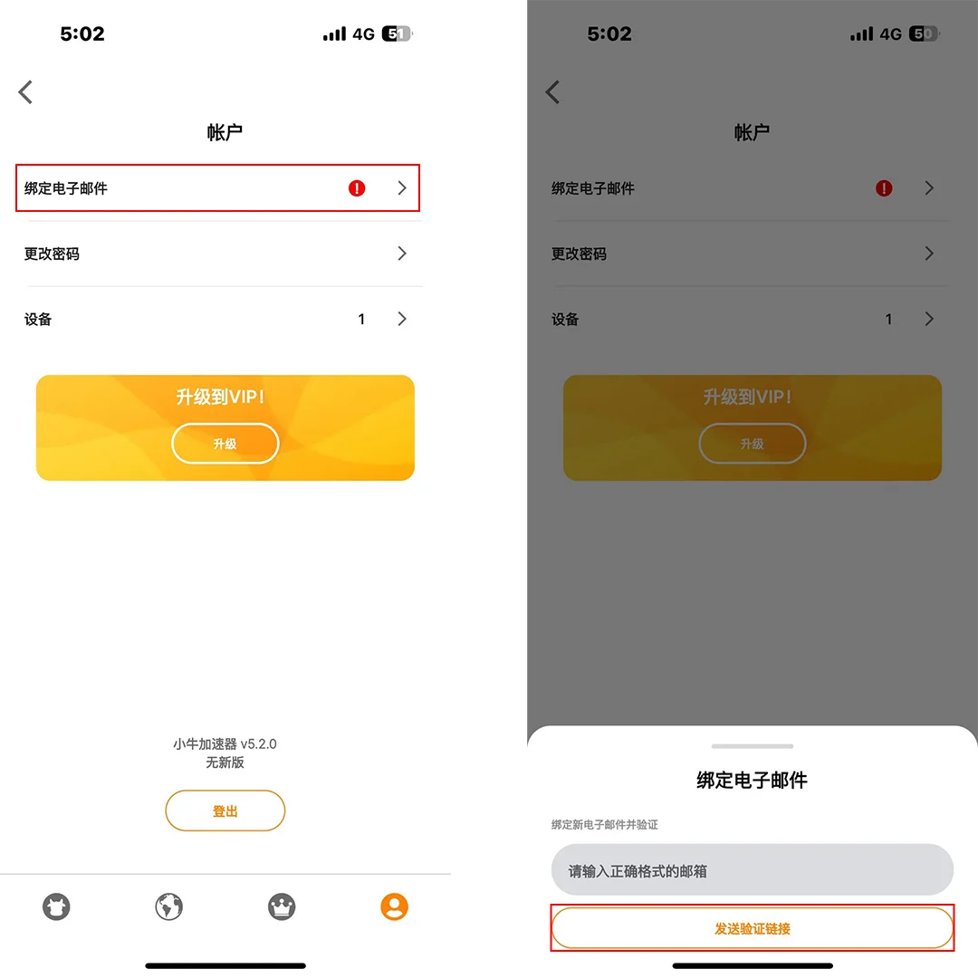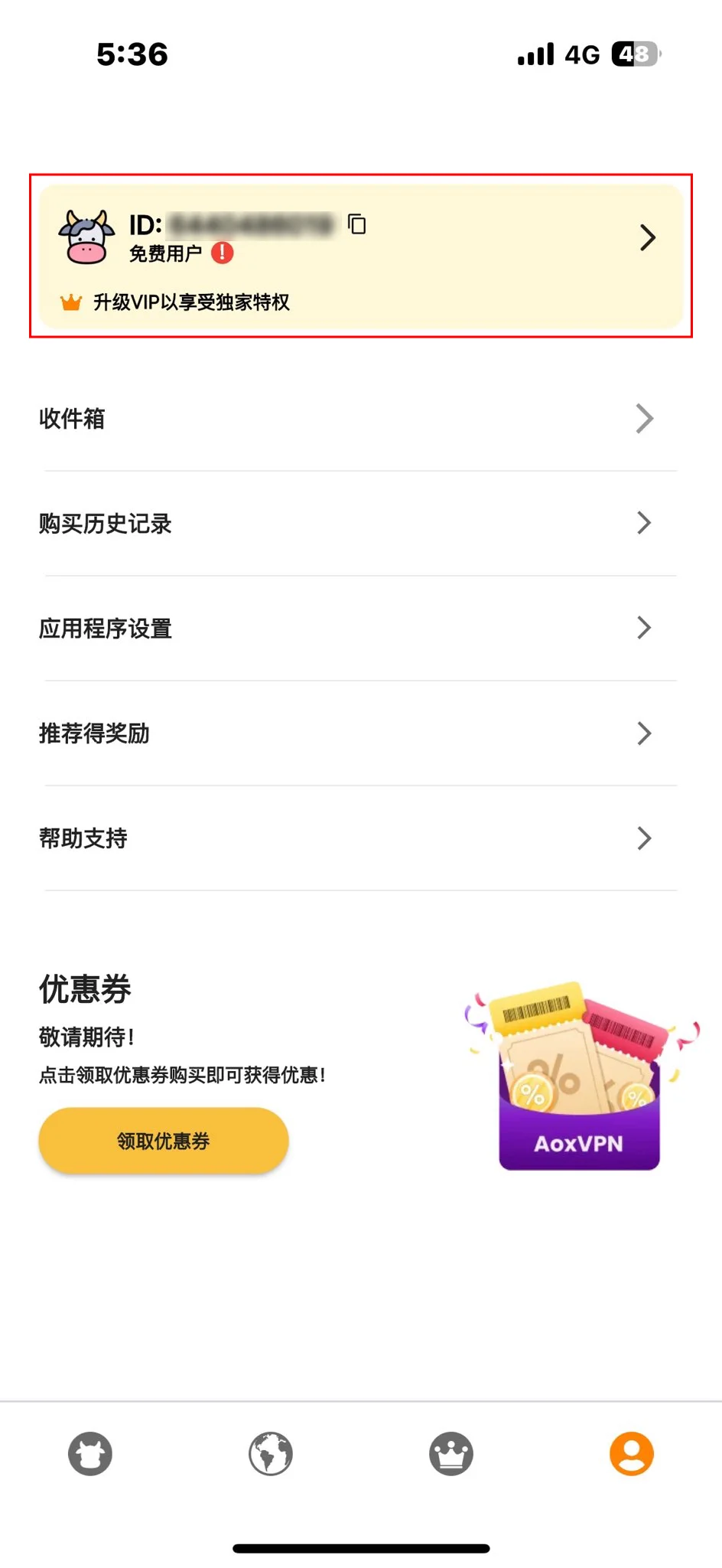 在小牛加速器应用上,转到账户页面。点击顶部横幅进入账户设置页面。